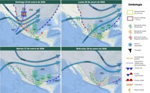 CDMX 25 de enero de 2026.- Este día, la tercera tormenta invernal de la temporada se desplazará sobre el norte del territorio mexicano,...