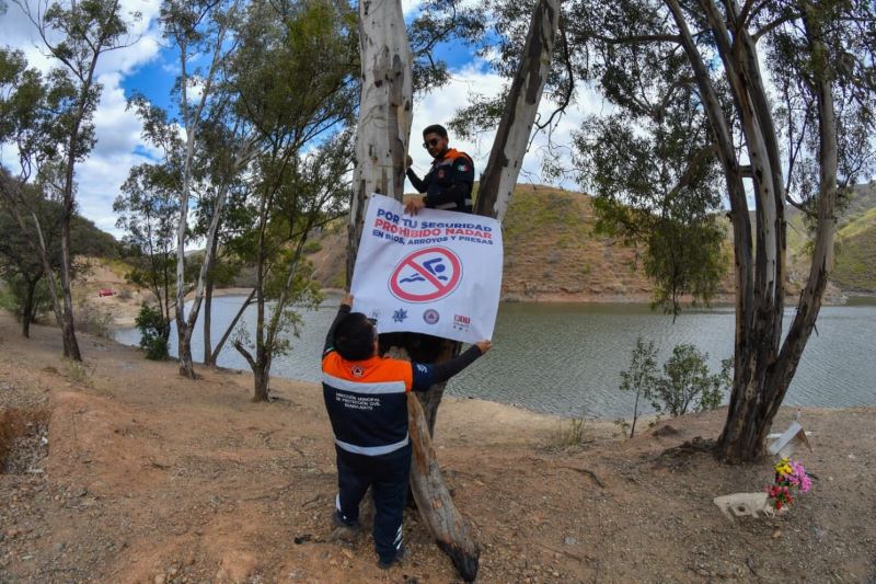 Además, se colocaron lonas informativas donde se establece la prohibición de nadar en los cuerpos de agua en la Presa de Mata, Presa de Peralillo y en la Presa de la Purísima, en sus tres zonas de acceso.