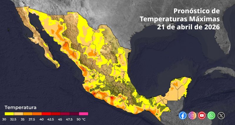 Pronóstico de temperaturas máximas para hoy 21 de abril de 2026: